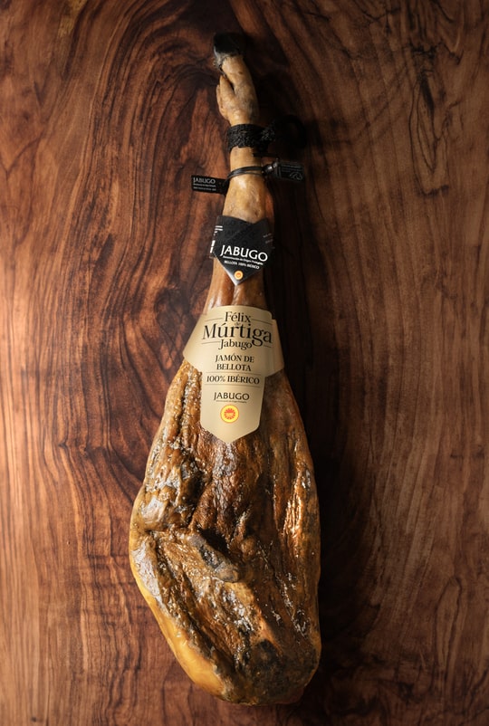 El jamón ibérico de cebo procede de cerdos ibéricos alimentados exclusivamente con piensos en granjas controladas. El jamón ibérico de cebo de campo combina la libertad de la dehesa con una dieta a base de pastos naturales y piensos de apoyo. Y el jamón de bellota 100 % ibérico Félix de Múrtiga, certificado con D.O.P. Jabugo, proviene de cerdos de raza ibérica pura que viven en libertad en nuestras dehesas y se alimentan exclusivamente de bellotas y hierbas durante la montanera. Esta crianza tradicional aporta una infiltración de grasa única, que se traduce en un sabor intenso, aroma inconfundible y una textura jugosa difícil de igualar.
