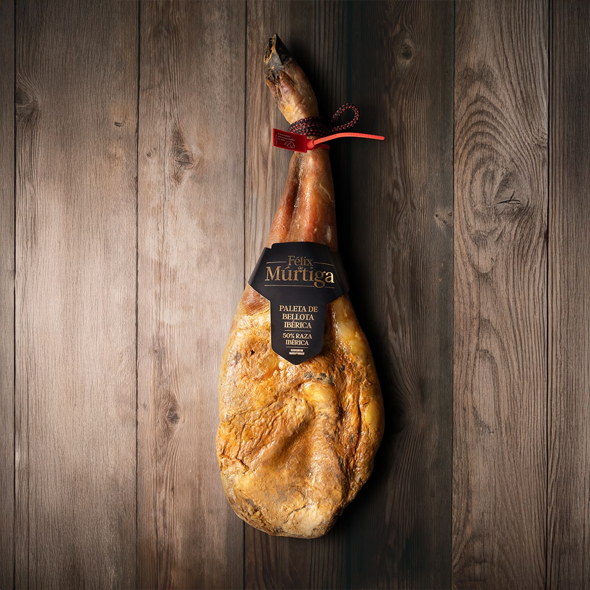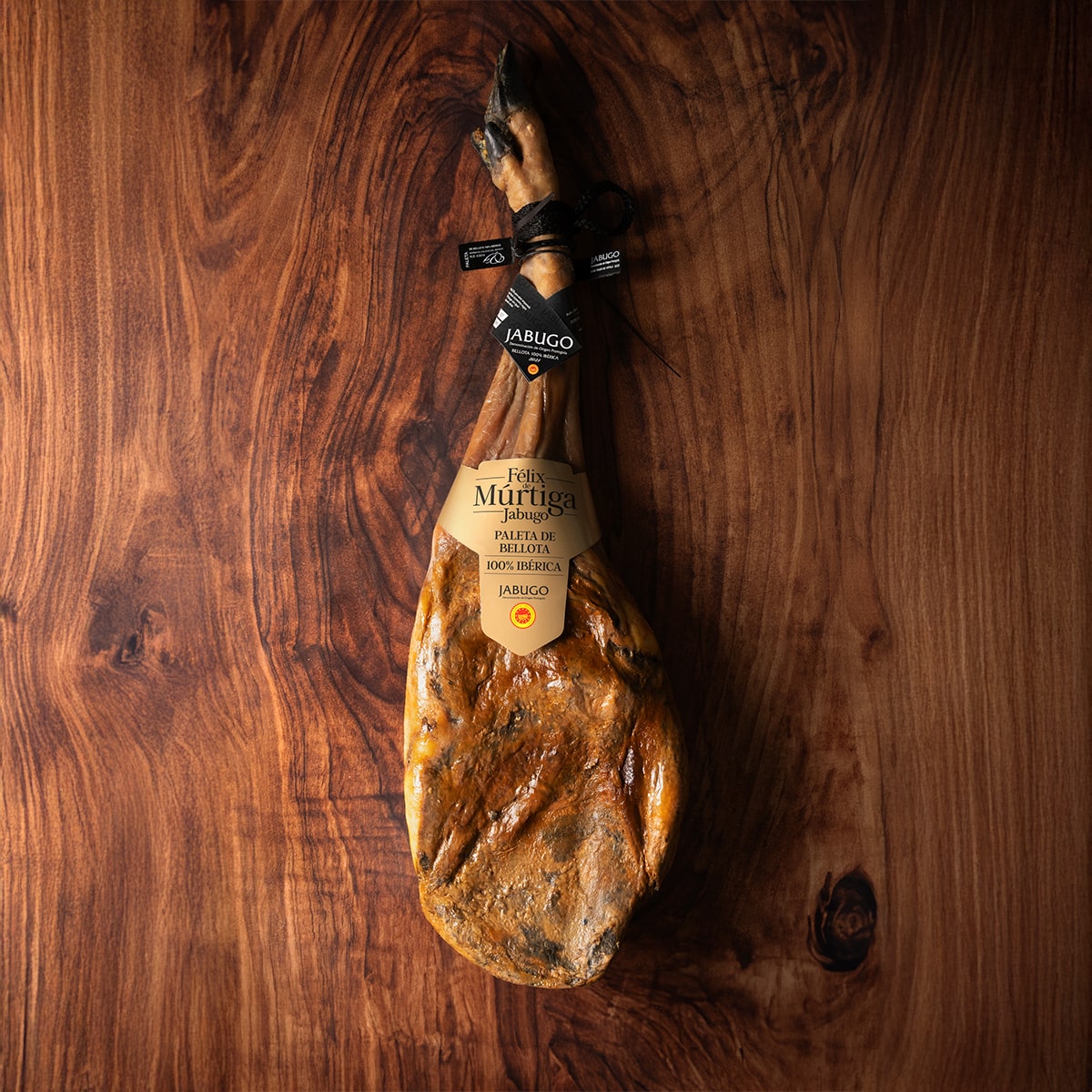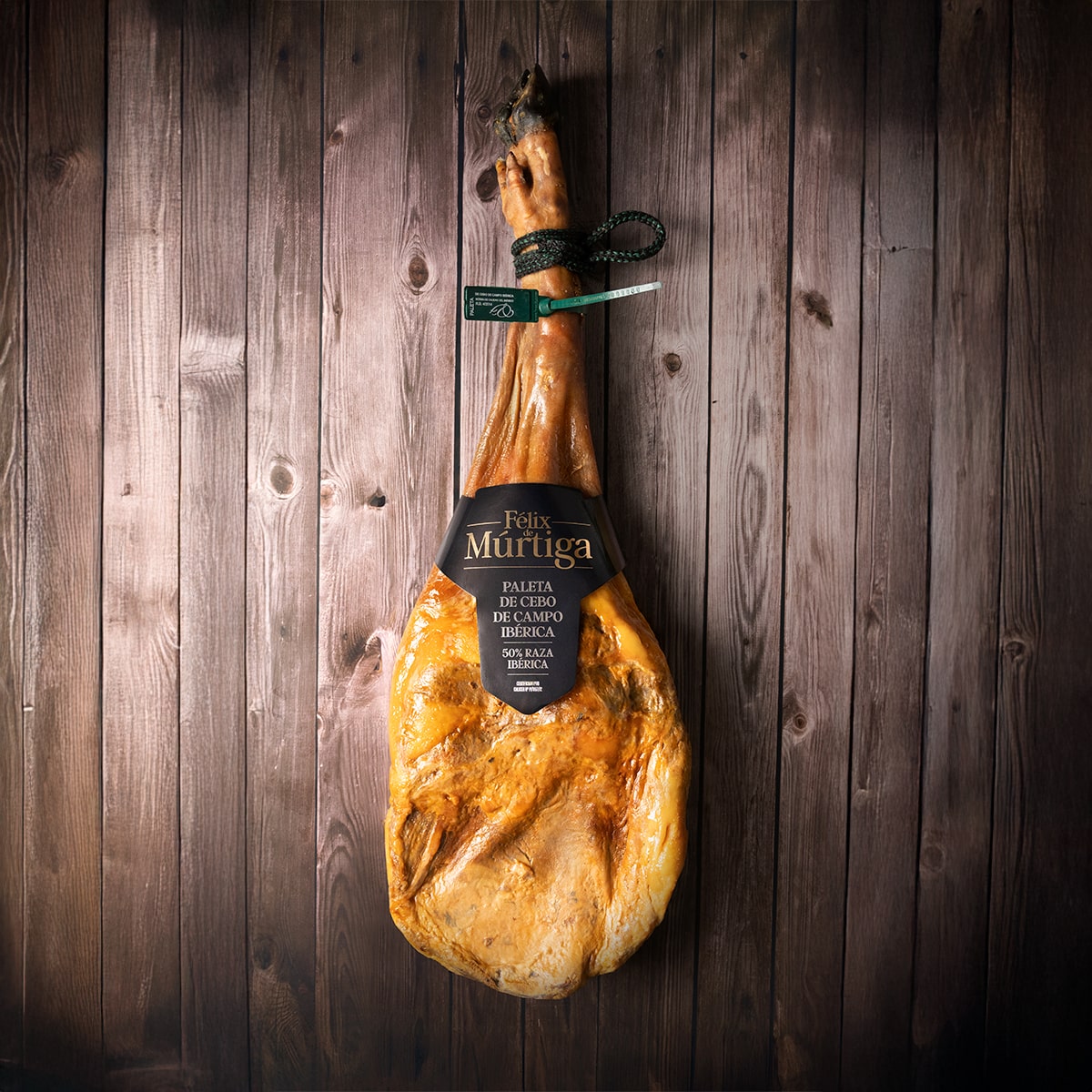 El jamón ibérico de cebo procede de cerdos ibéricos alimentados exclusivamente con piensos en granjas controladas. El jamón ibérico de cebo de campo combina la libertad de la dehesa con una dieta a base de pastos naturales y piensos de apoyo. Y el jamón de bellota 100 % ibérico Félix de Múrtiga, certificado con D.O.P. Jabugo, proviene de cerdos de raza ibérica pura que viven en libertad en nuestras dehesas y se alimentan exclusivamente de bellotas y hierbas durante la montanera. Esta crianza tradicional aporta una infiltración de grasa única, que se traduce en un sabor intenso, aroma inconfundible y una textura jugosa difícil de igualar.