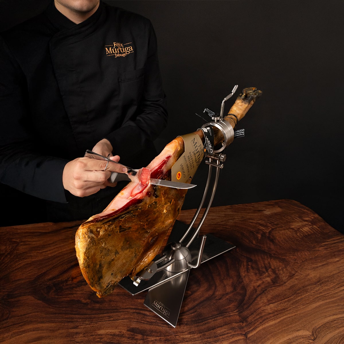 Nuestro producto estrella, la Paleta de Bellota 100% Ibérica Denominación Origen Protegida Jabugo, destaca por su sabor intenso y equilibrado en el que se descubren notas de frutos secos aportadas por la bellota. Un auténtico referente de la excelencia ibérica.